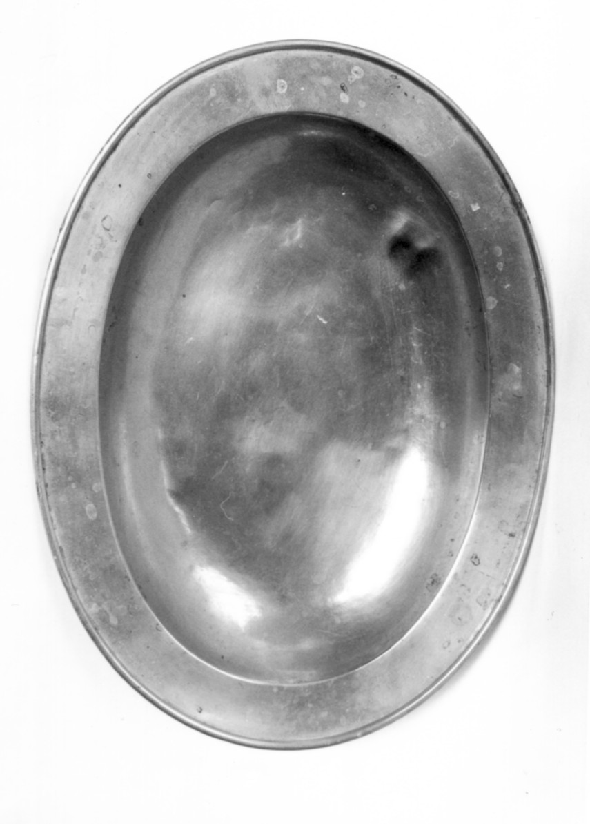 bacile ovale, liscio, con larga tesa con bordo arrotondato e lievemente ri levato