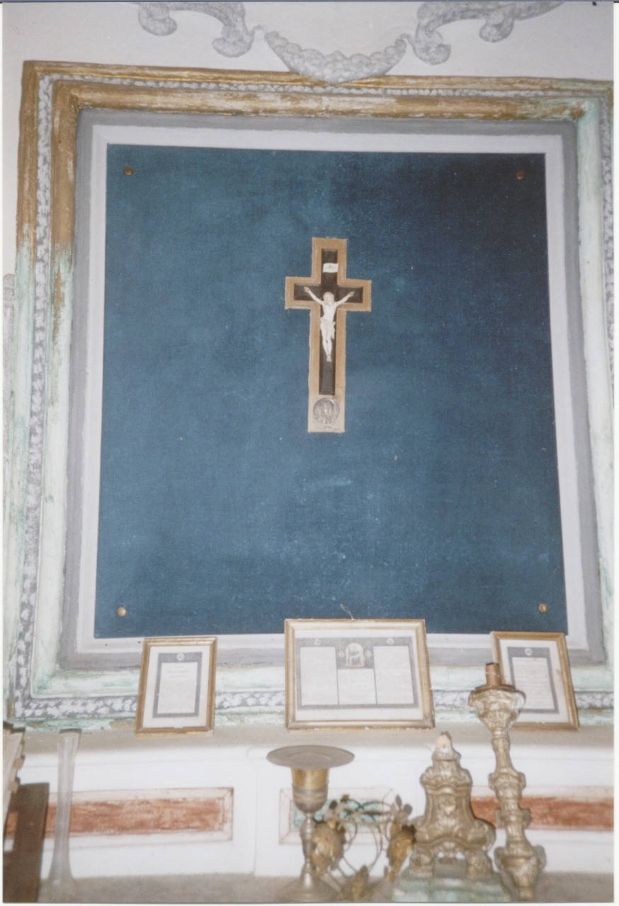 - NOTIZIE STORICO CRITICHE La piccola cappella dedicata alla Madonna del Rosario ha avuto ragion d'essere in seguito ad una Bolla papale, oggi incorniciata e appesa sulla parete destra della cappelletta, che autorizzava la celebrazione del culto. Di epoca recente è la realizzazione in stucco della cornice che ingloba all'altare il quadro con il crocifisso di pregevole fattura, che solo recentemente è stato inchiodato al quadro entro cui si trova oggi