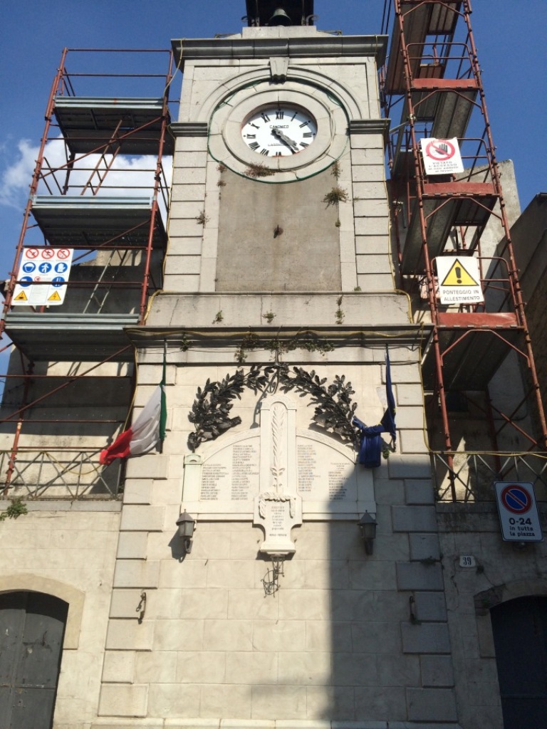 - NOTIZIE STORICO CRITICHE La lapide è affissa sulla facciata principale di un palazzo che è considerato essere l'ultima testimonianza di una cinta muraria facente parte di un castello di epoca longobarda. Nel 1925 la lapide è menzionata in un testo dell'epoca come esempio di monumenti ai caduti della Grande guerra. Bibliografia: Guida d'Italia- Basilicata e Calabria, Touring Club 1980; La Basilicata nel mondo : rivista mensile illustrata, Tip. Giannini, Napoli 1925