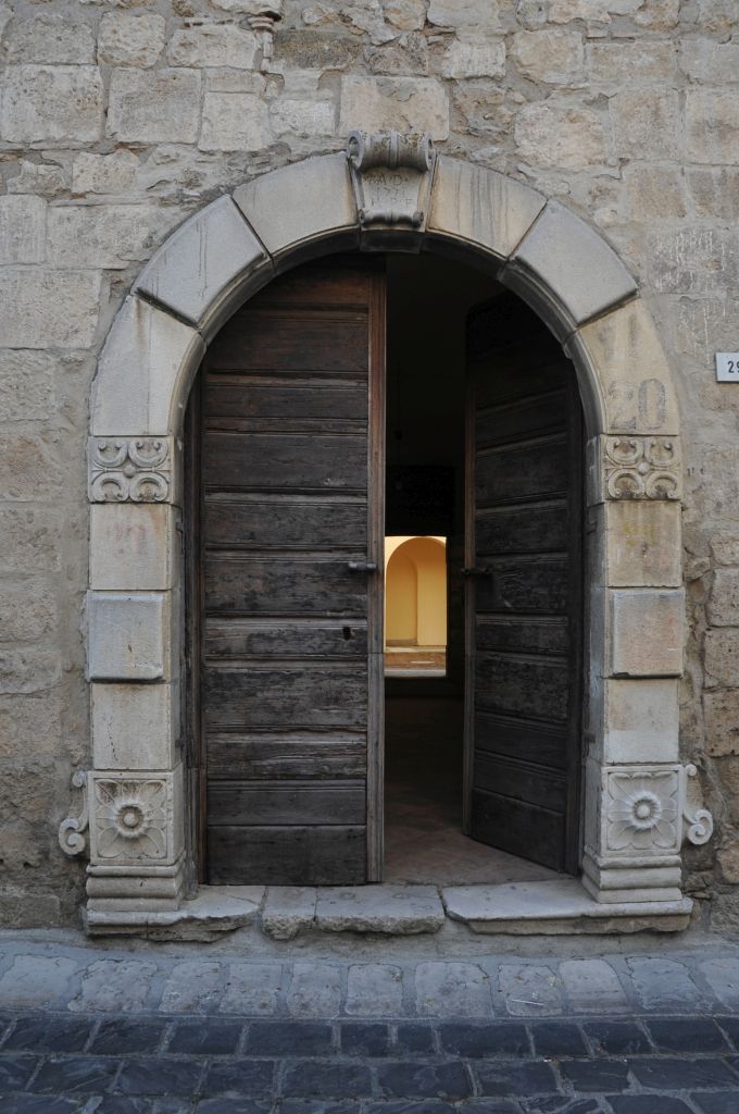 - NOTIZIE STORICO CRITICHE Il portale centinato, opera di un ignoto lapicida lucano, è datato 1771, come riportato sul cartiglio, ed è un esempio della decorazione di portali secondo un modello di impianto semplice molto diffuso nel Settecento. La semplicità dell’impianto è arricchita dalle linee essenziali del disegno alla base dei piedritti e dal movimento dato dalle decorazioni alla base dell’arco e ai lati degli stipiti. In origine, al di sopra del portale era presente uno stemma (cfr. scheda ministeriale n. 170000169020)