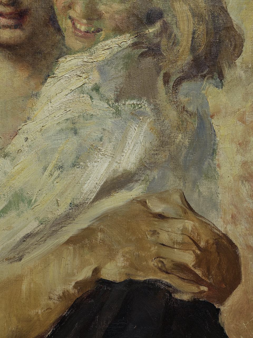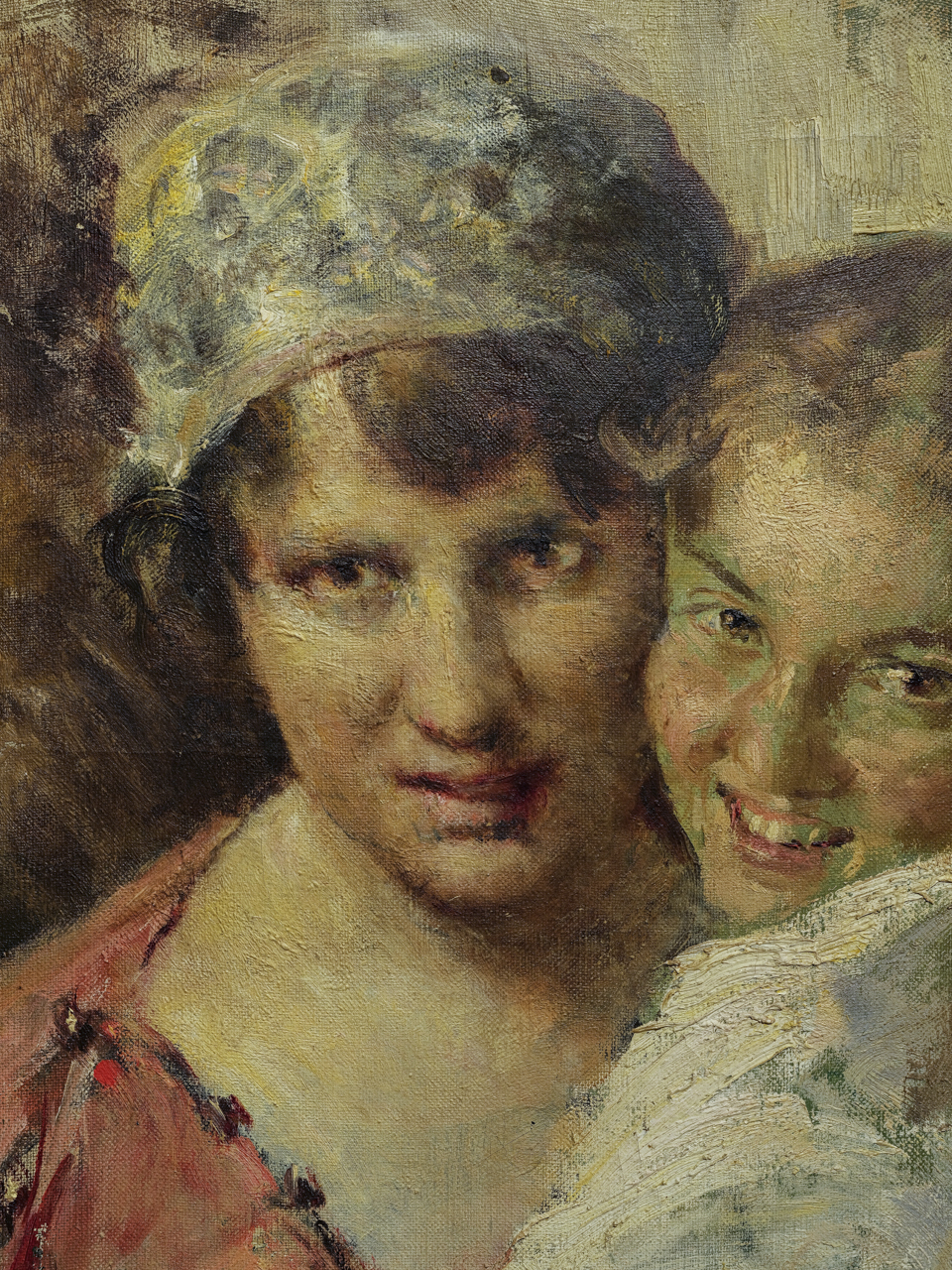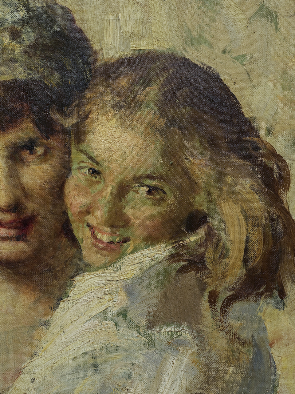 Ritratto di donna e fanciulla dipinto a olio su tela