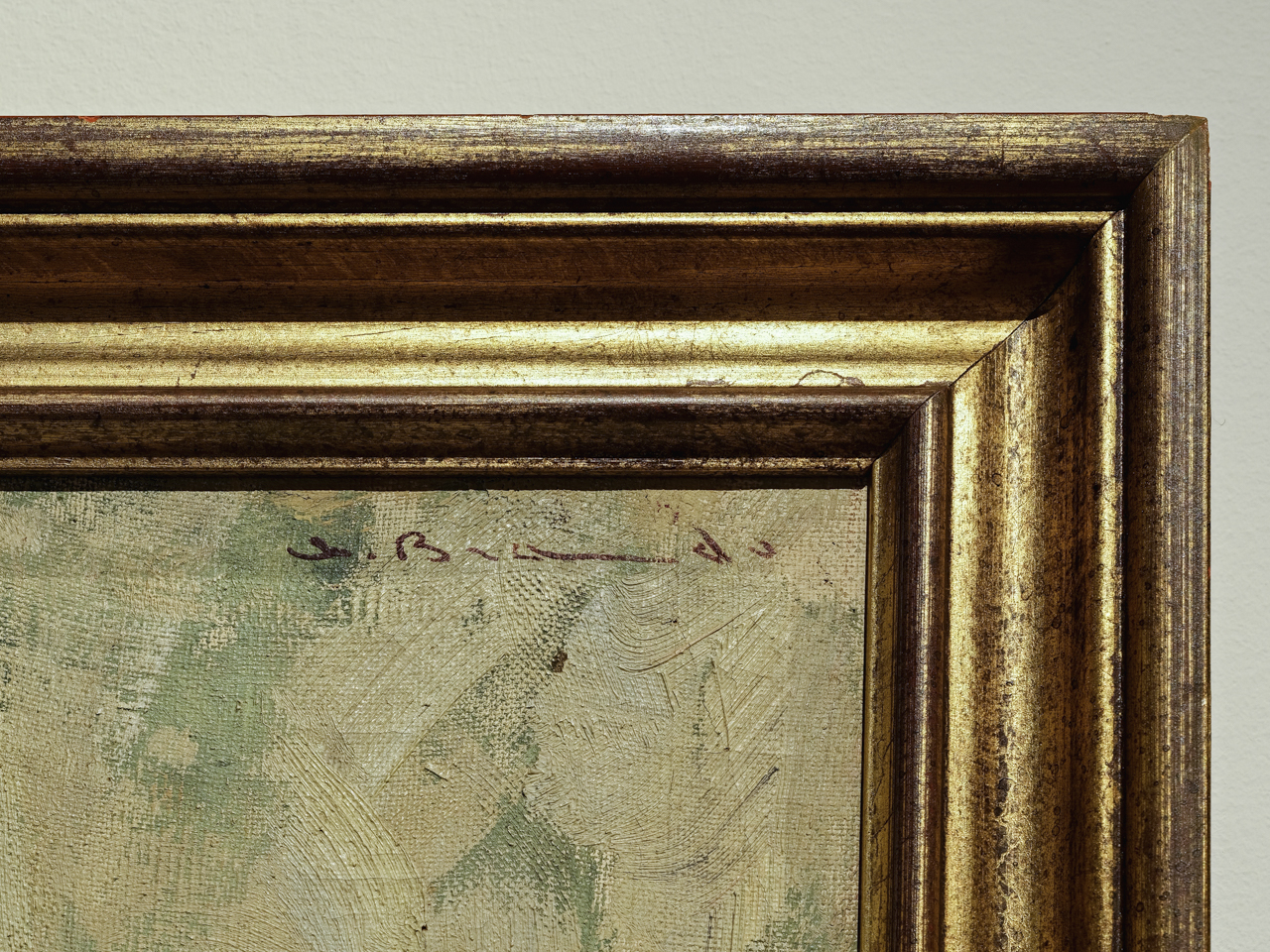 - NOTIZIE STORICO CRITICHE Nei volti delle madri dipinte da Angelo Brando negli anni Trenta pare di poter riconoscere le fattezze della moglie Eugenia. In Gioie materne l’artista raffigura la medesima modella bionda il cui volto ricorre anche nelle tele coeve a simile soggetto. Il sorriso spontaneo, i grandi occhi gioiosi rimandano alla poetica dei sentimenti familiari e degli intimi affetti che impronta gran parte della produzione matura di Brando (si veda I. Valente, Nel solco dell’eredità dell’impressionismo: la “poesia pittorica” di Angelo Brando, in M. Saponaro (a cura di), Angelo Brando. Opere scelte 1895-1946. Proposte per un museo, Bari, Gelsorosso, 2007, p. 30). La peculiare resa impressionistica della pennellata è qui evidente soprattutto nel trattamento del bianco della camicia della fanciulla che, come nelle altre opere dell’artista, si costruisce su una gamma di ombre colorate e conferisce alla composizione una forte luminosità. La tela fu selezionata dallo stesso Brando tra le proposte con cui partecipare alla II Mostra Nazionale del Sindacato Fascista, organizzata a Napoli nel 1937 (cfr. Ivi, p. 35)