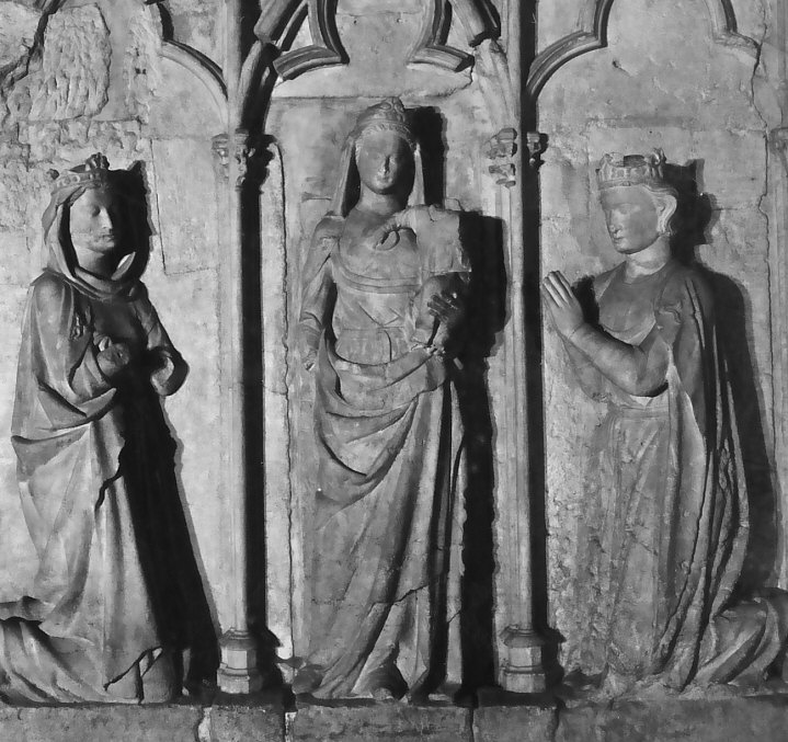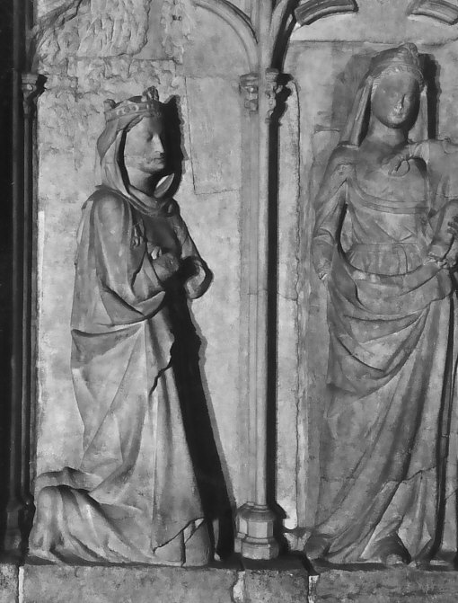 Il Mausoleo, posto al centro del muro del transetto nord della cattedrale, è una specie di trittico archiacuto, suddiviso in tre arcate da esili colonnine sormontate da capitelli. In ogni arcata si trova una statua in alto rilievo. Al centro: la Vergine, che in posizione retta e mutila della mano destra, ha in braccio il bambino, mancante della testa e del braccio sinistro. A sinistra: la regina genuflessa, ha in testa la corona, le mani giunte in atto di pregare, gli occhi chiusi, e il volto rigido. La statua di Filippo, rappresentato genuflesso, ha la corona in testa e gli occhi aperti. Lievi tracce di doratura in corrispondenza alle capigliature ed alle corone
