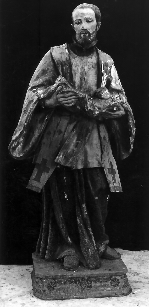Il Santo, nella veste di confessore, portava fra le braccia il Bambino Gesù, che, però ora manca. Curata è l'espressione contemplativa del volto