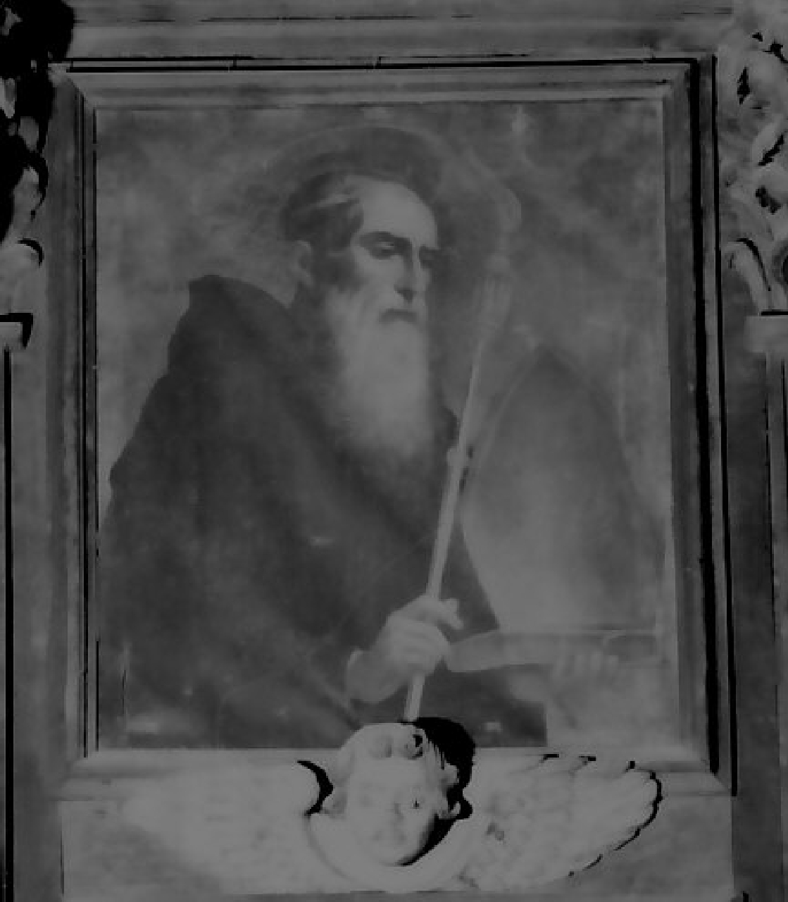 Il dipinto, accuratamente eseguito, raffigura S. Benedetto e orna il lato destro del trittico dell'altare maggiore. Il Santo, dalla lunga barba, è rappresentato con libro, mitria e bastone