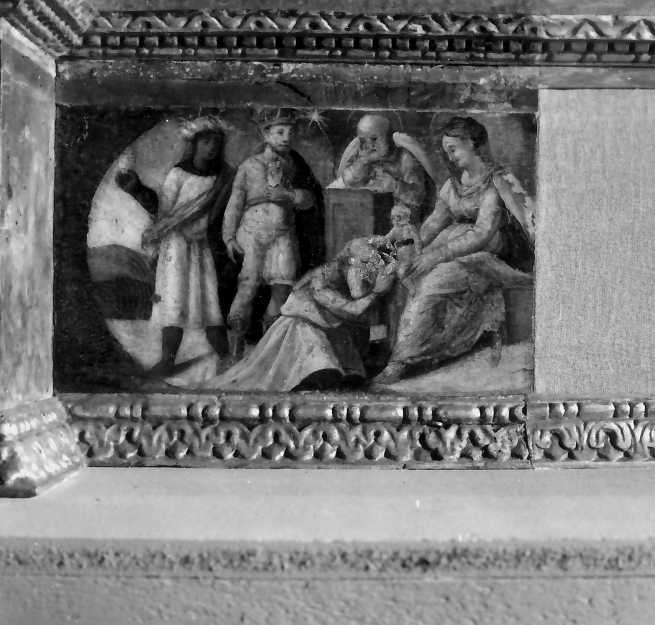 - NOTIZIE STORICO CRITICHE I due stemmi inferiori di Saracena e dei Sanseverino fanno pensare che l'opera fu commissionata per Saracena da un membro della nobile casata. Un utile orientamento cronologico offre la presenza di S. Francesco di Paola canonizzato nel 1519, mentre l'angelo e la Madonna sembrano richiamare il Sabatini e il Criscuolo, pregevoli rappresentanti del raffaellismo meridionale. Ciò che rimane nella predella presenta agganci con gli epigoni del primo Polidoro, anche perchè nel 1524 Polidoro dipingeva a Napoli la loggia e il cortile del palazzo dei Montalto con mano raffaellesca