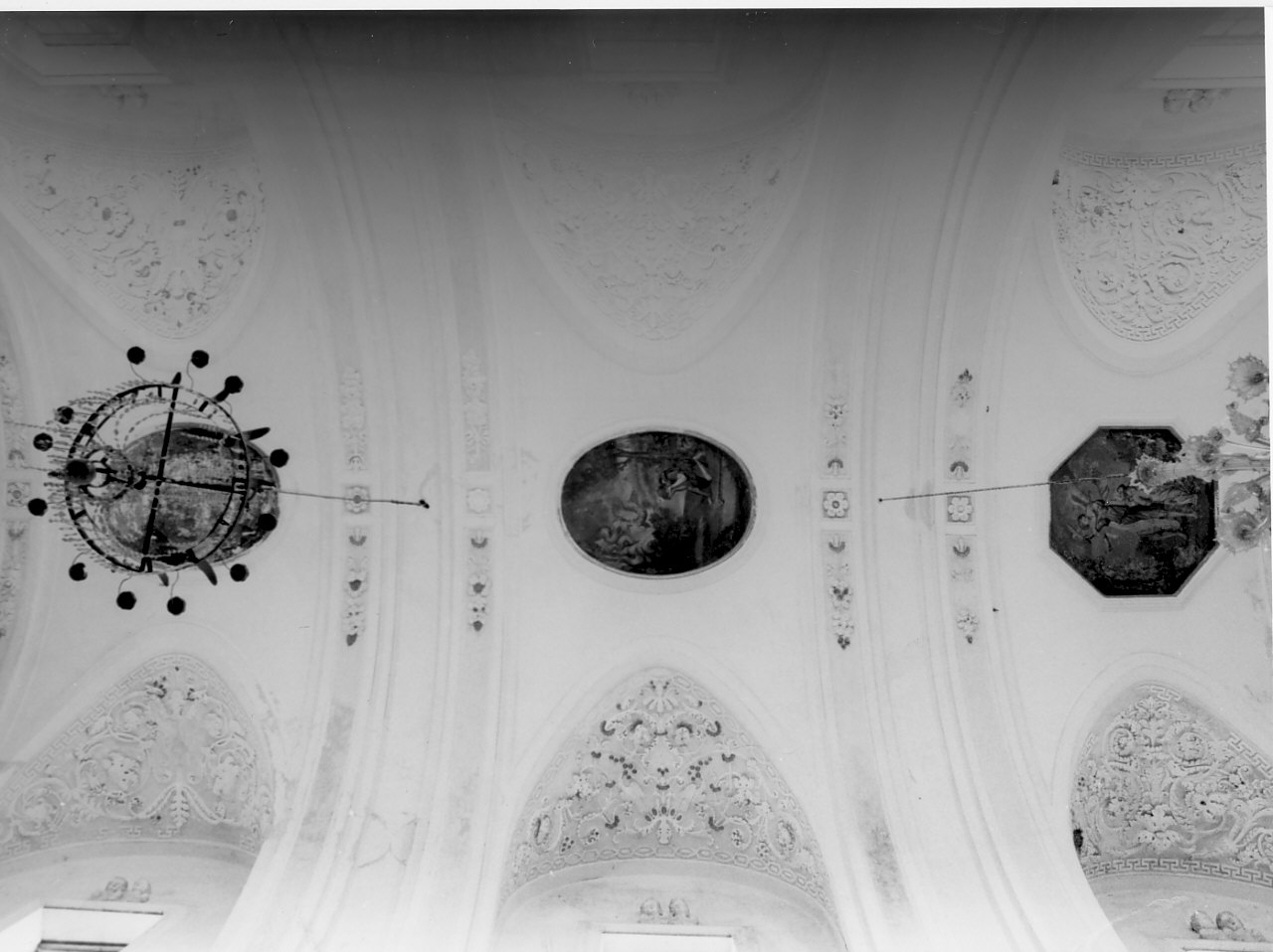 Decorazione a stucco con minuti motivi floreali di vario tipo