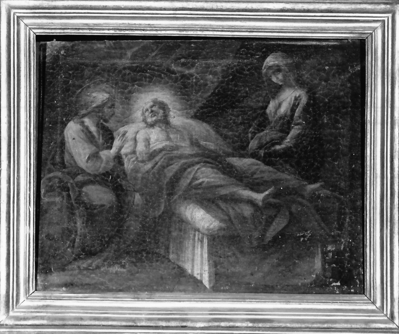 - NOTIZIE STORICO CRITICHE La tela, analogamente ad altre presenti nel convento, presenta evidenti connessioni con un dipinto riferito al pittore molfettese: "il transito di S. Giuseppe" della chiesa di S. Teresa a Torino, replicato in un olio appartenente alla Cattedrale di Ascoli Satriano. Entrambi sono a loro volta debitori di un disegno del Solimena conservato al British Museum, individuato dal Bologna come studio per una pala della chiesa Napoletana di S. Maria di Caravaggio. Le modeste dimensioni, che possono plausibilmente rimandare a un bozzetto, sottolineano il carattere di sintesi del quadretto, da considerare non tanto una banale copia, quanto se mai una semplificata rivisitazione dell'originale giaquintesco