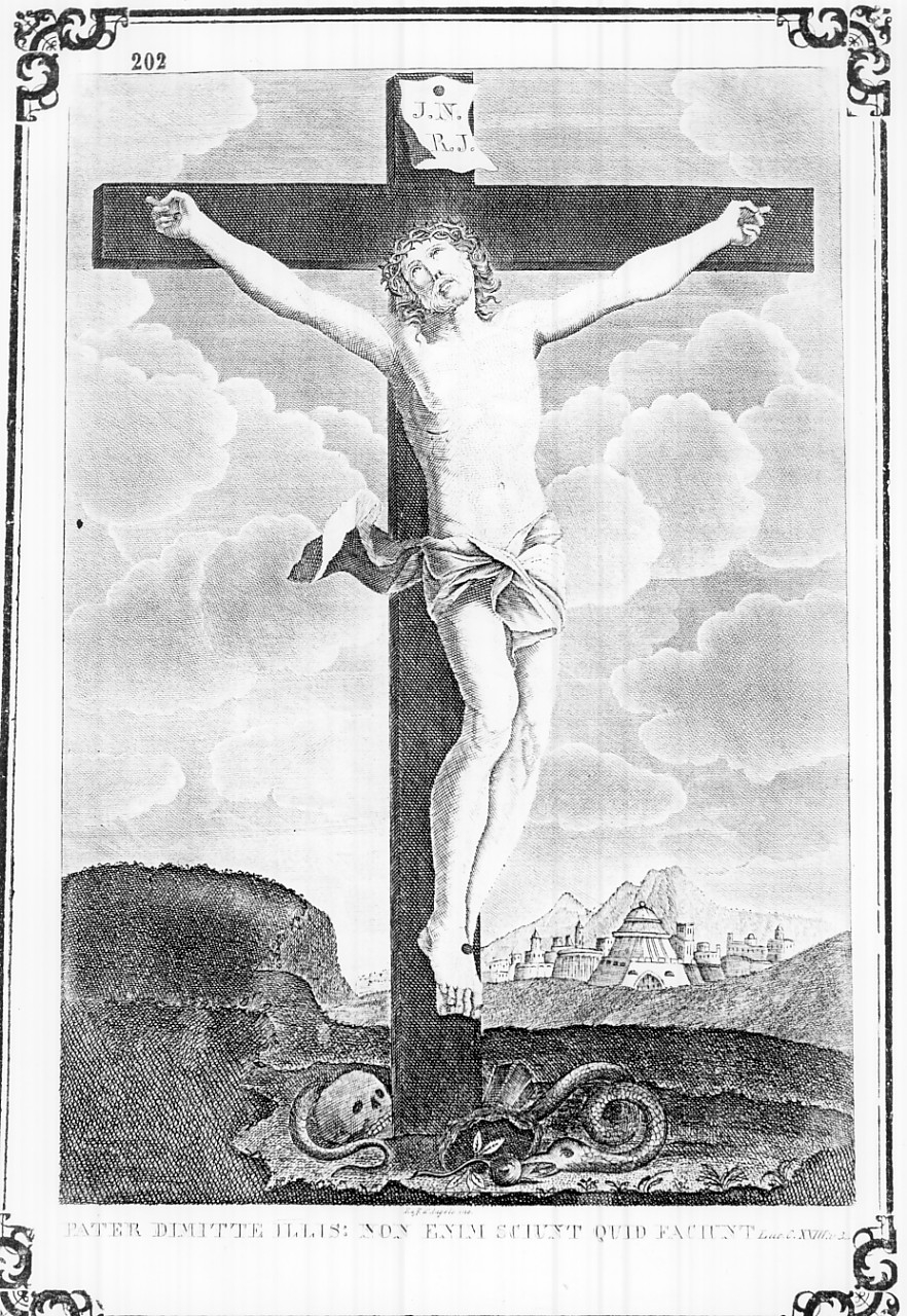 - ISCRIZIONI margine basso Crocifissione - RAFF. D'ANGELO INC - corsivo - a impressione -