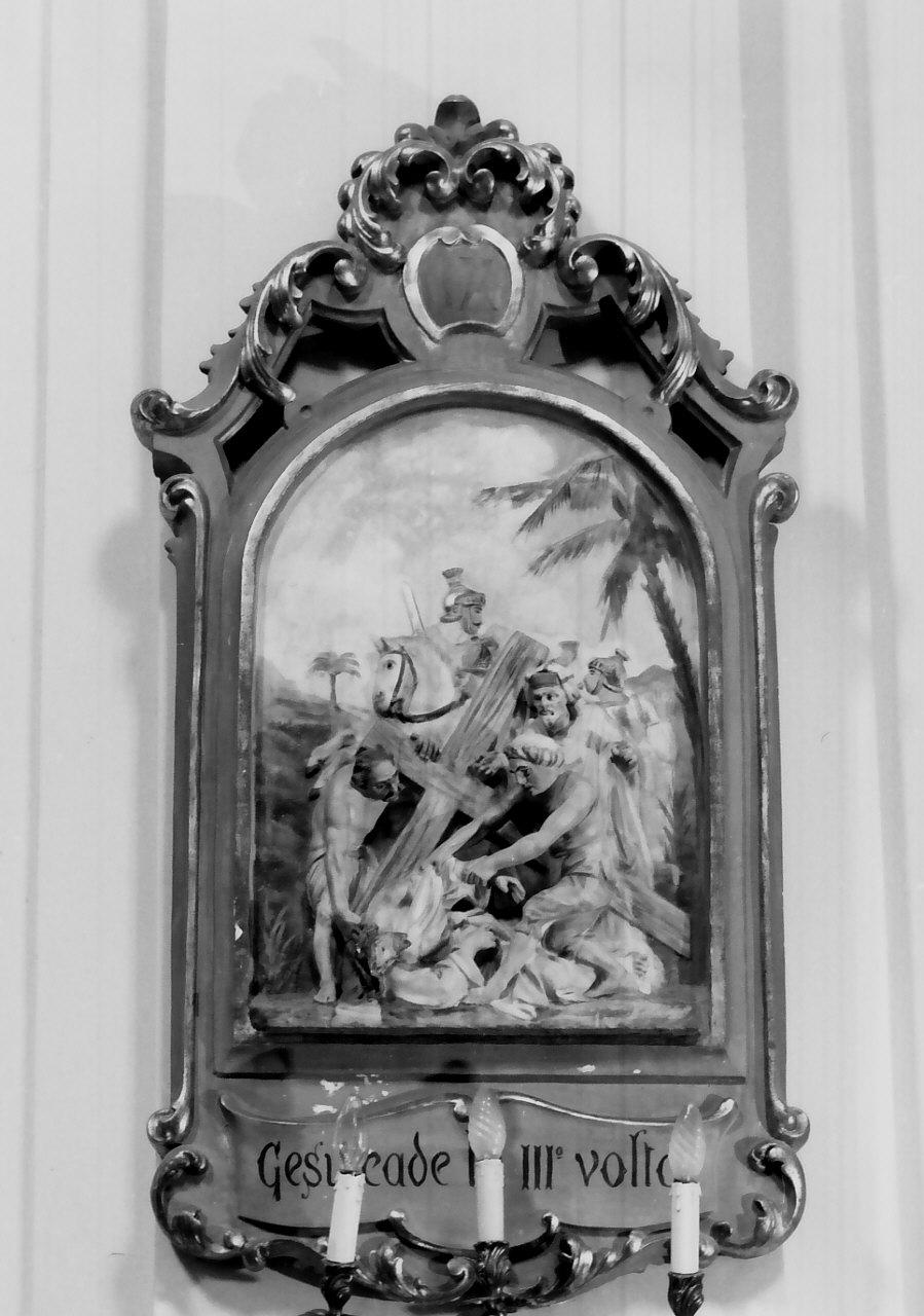 - ISCRIZIONI lato inferiore formella - GESù CADE PER LA III VOLTA - corsivo - a pennello -
