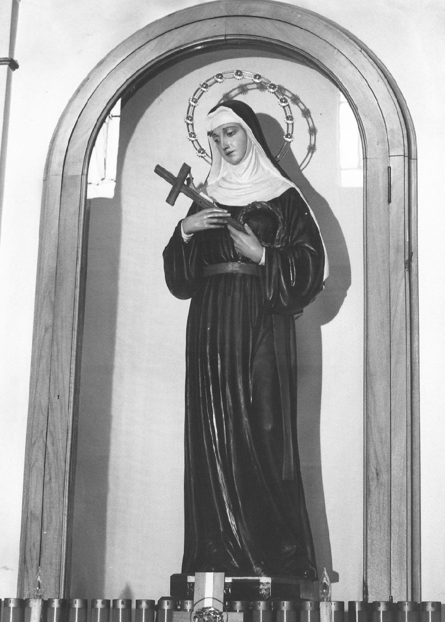 Personaggi: S. Rita da Cascia. Attributi: (S. Rita da Cascia) abiti domenicani; crocifisso