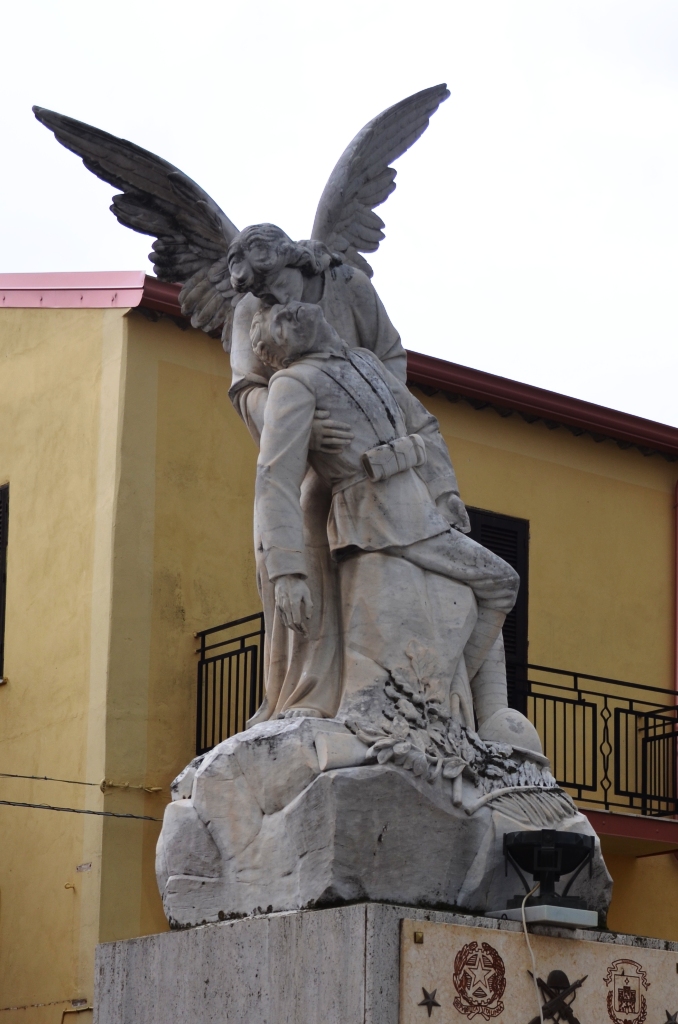 - ISCRIZIONI sulla base, fronte - 1915 18 / RIZZO MARIANO / GUALTIERI LUIGI / GUALTIERI MASSIMINO / LUPIA VITO / DE VITO PIETRO / PEZZANO ROCCO / CATIZZONE TOMMASO / TALLARICO GIUSEPPE / COMMISSO LUIGI / RIZZO MASSIMINO / MANICO GIUSEPPE / TALLARICO LUIGI / RIZZO LUIGI / LEONE RAFFAELE / PETRUCCI RAFFAELE / PANE LUIGI / SCARPINO FELICE / LOMUOIO PASQUALE / LEONE GIACOBBE / RICCELLI TOMMASO / MANICO FRANCESCO / 4 11 1975 || 1935 45 / [seguono 13 nominativi] / 30 3 2006 - a caratteri applicati in bronzo -