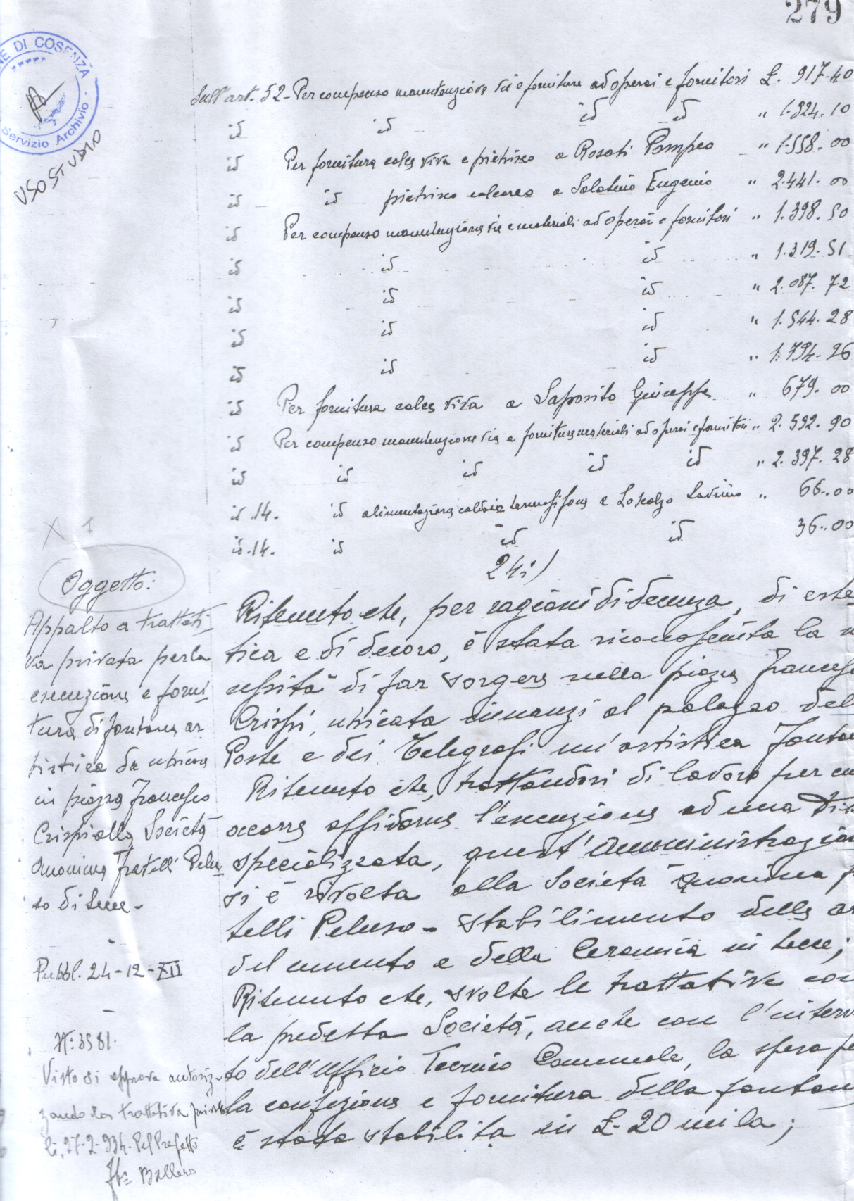 - NOTIZIE STORICO CRITICHE E' da considerare l'attribuzione della statua del cavallo al noto artista Antonio Bortone, in quanto il cavallo della Fontana del Balilla è l’archetipo del cavallo alato della "Fontana dei quattro cavalli a Lecce" di cui il bozzetto del disegno di Bortone che attualmente si trova nel museo Provinciale S. Castromediano a Lecce, è la testimonianza . La fontana di Lecce fu disegnata dal noto scultore Antonio Bortone e realizzata dai Fratelli Peluso; la collaborazione tra i due realizzatori avvenne per lungo tempo a Lecce; per cui si può ipotizzare presumibilmente, che lo scultore Bortone realizzò non solo il bozzetto del cavallo alato delle due fontane, ma probabilmente anche il bozzetto della Statua d'atleta Balilla