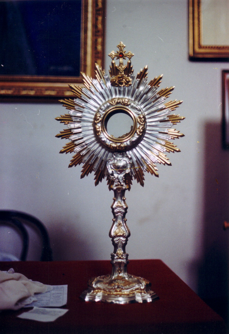 - NOTIZIE STORICO CRITICHE L‘ostensorio di gusto rococò, presenta ancora elementi tardo-barocchi ed è opera di un artigiano palermitano la cui sigla è L. A