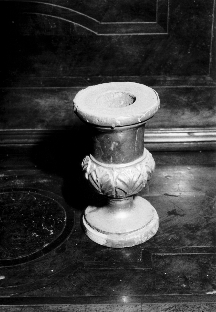 Tipologicamente la serie dei sei candelieri illuminava la cerimonia eucaristica riflettendosi negli specchi del dossale sopra l‘altare. Morfologicamente il motivo fogliaceo impreziosisce il manufatto