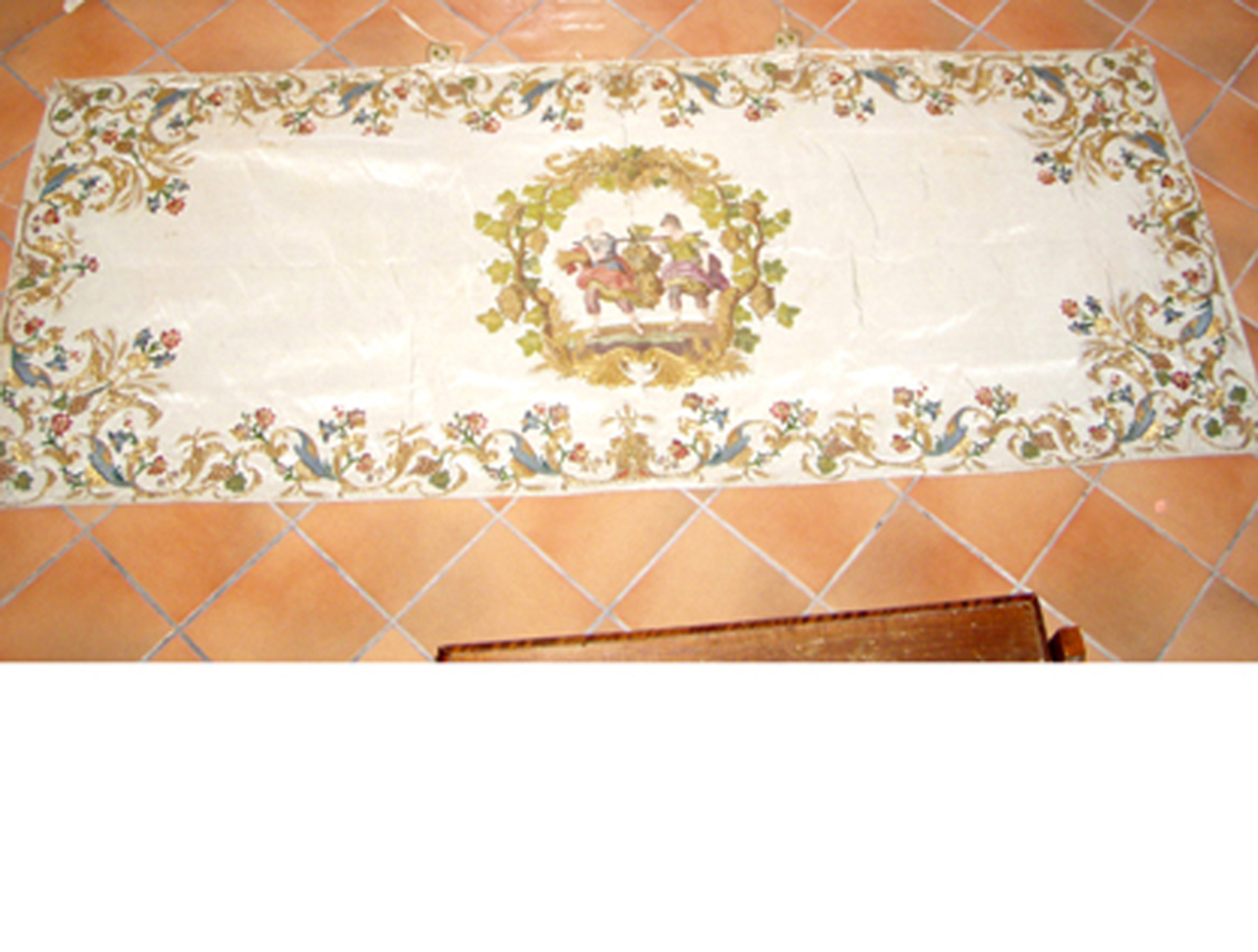 - NOTIZIE STORICO CRITICHE Pur trattandosi di una produzione siciliana, lo splendido velo omerale risente di influssi, soprattutto nella delicata figurazione centrale, che possono individuarsi nell‘ambito napoletano recepiti, in ogni caso, con grande freschezza nel fantasioso ornato perimetrale