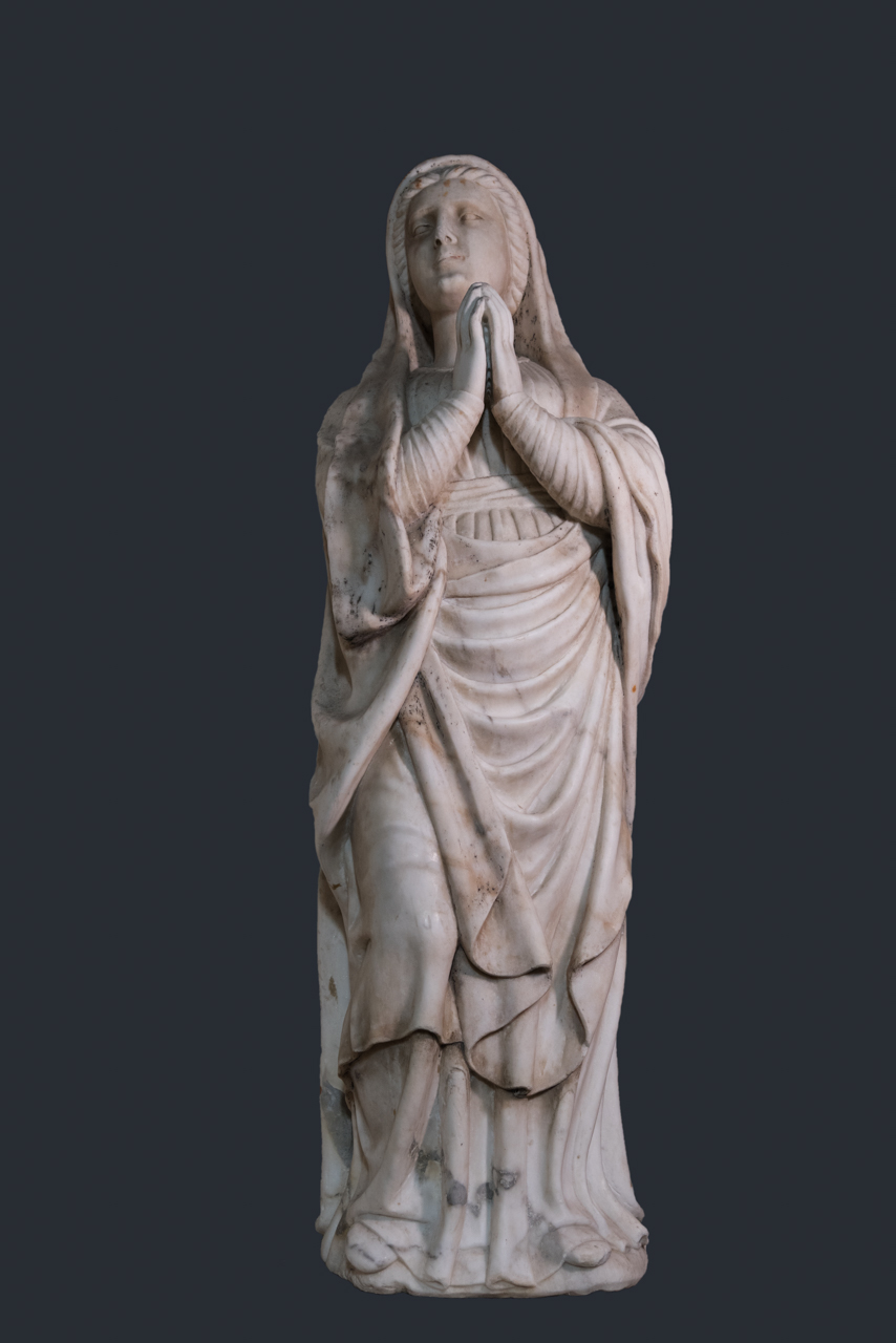 Gruppo scultoreo composto da due statue marmoree separate, poste lateralmente sulla copertura del sarcofago in marmo policromo appartenente al Senatore Bonanno (1596). L'opera avvolta in un alone di spiritualità, rappresenta l'angelo con due grandi ali accuratamente scolpite, le braccia incrociate sul petto, le ginocchia lievemente flesse. Morbidi riccioli incorniciano il suo volto e lo sguardo è rivolto al cielo. Indossa una candida veste dal morbido panneggio con una larga ansa attorno alla spalla e grandi pieghe generate dalle ginocchia che lasciano intravedere i piedi scolpiti con estrema finezza, caratteristiche tipiche del modello gaginiano. Di fronte all'angelo, la Madonna, con il capo appena inclinato e le mani giunte, lo guarda con umiltà e un atteggiamento di serena accettazione per ciò che sta per accadere. Indossa una veste a pieghe dall'ampia scollatura e un manto fasciante che le copre il capo dal quale fuoriescono i capelli arrotolati intorno alla sommità della testa