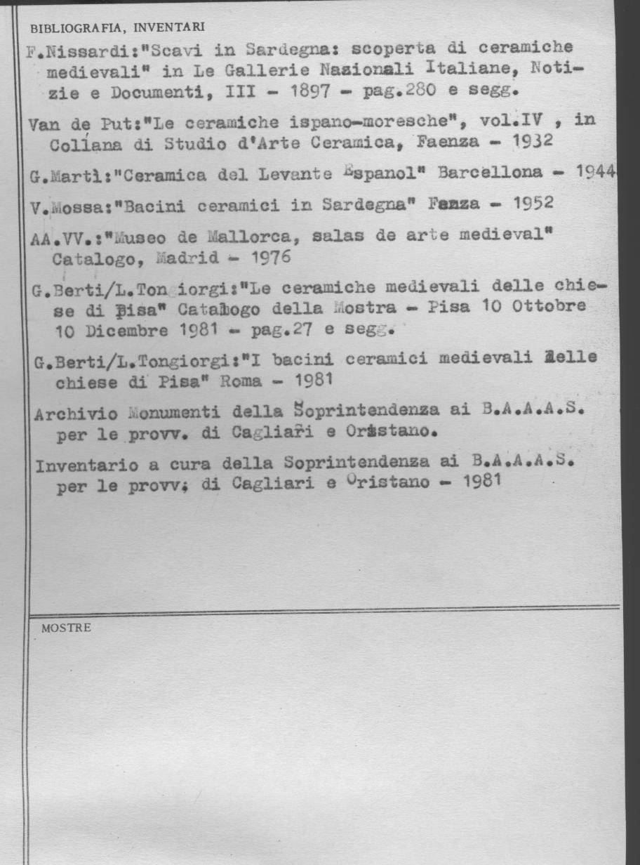 - ENTE SCHEDATORE Soprintendenza per i Beni Architettonici Paesaggistici Storici Artistici ed Etnoantropologici per le province di Cagliari e Oristano