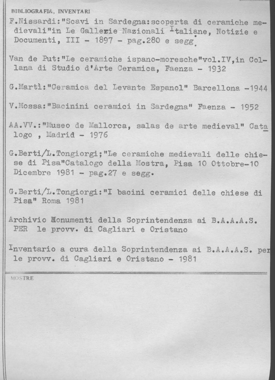 - ENTE SCHEDATORE Soprintendenza per i Beni Architettonici Paesaggistici Storici Artistici ed Etnoantropologici per le province di Cagliari e Oristano