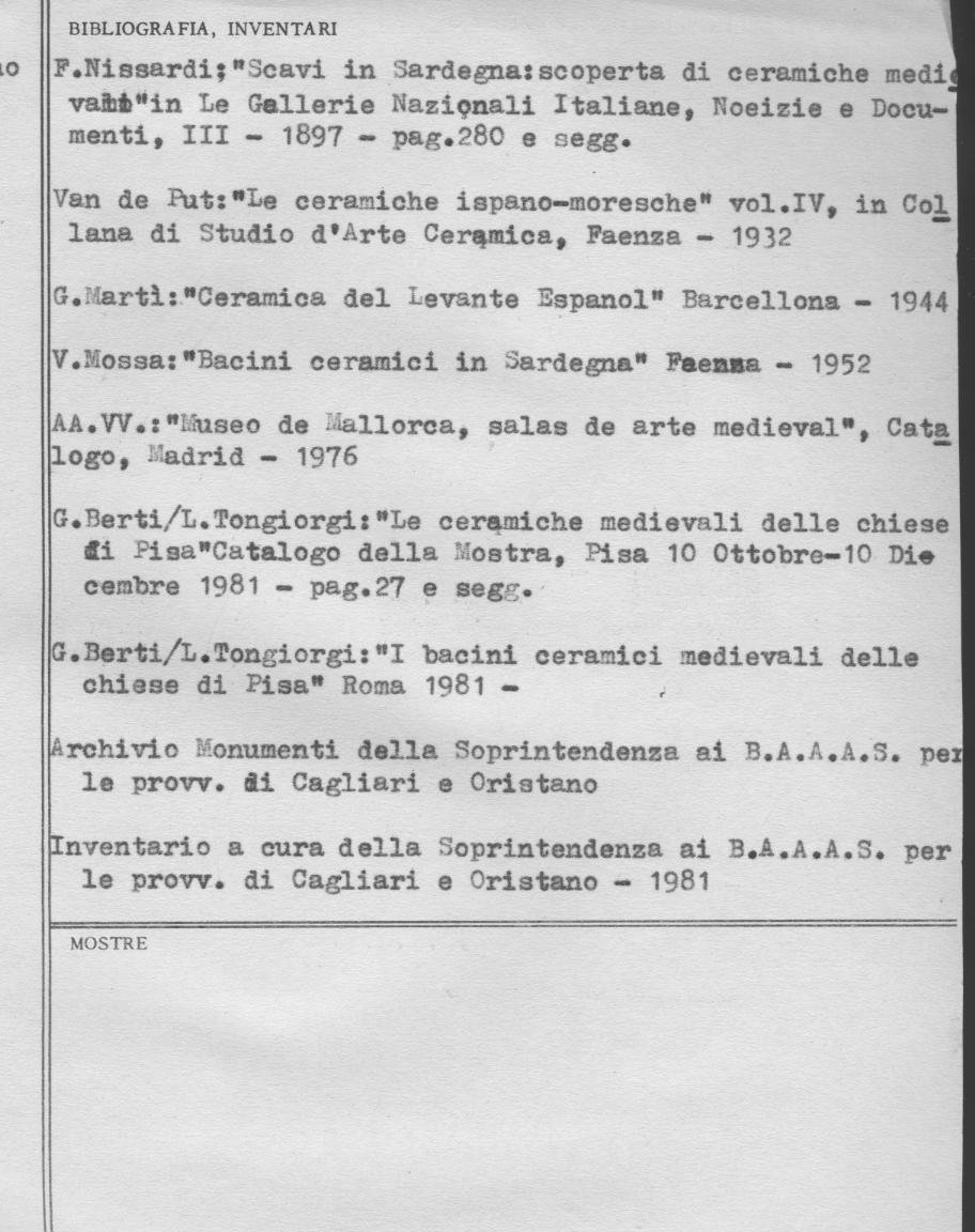 - ENTE SCHEDATORE Soprintendenza per i Beni Architettonici Paesaggistici Storici Artistici ed Etnoantropologici per le province di Cagliari e Oristano