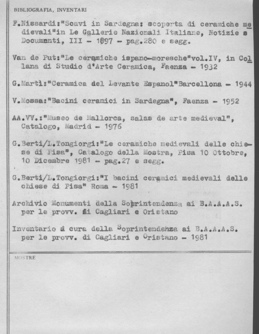 - ENTE SCHEDATORE Soprintendenza per i Beni Architettonici Paesaggistici Storici Artistici ed Etnoantropologici per le province di Cagliari e Oristano