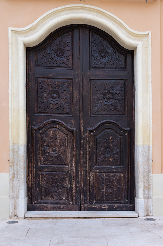 - NOTIZIE STORICO CRITICHE Dai documenti dell'archivio dell'Arciconfraternita emerge qualche notizia sulla committenza del portone nel 1837 al maestro falegname Antonio Rossi (Corda 2005), forse omonimo del già noto Rossi operante in Toscana in area senese. Il manufatto è stato sottoposto a diversi ripristini e manutenzioni, durante gli anni
