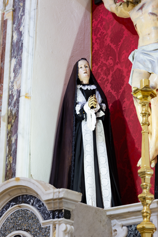 - NOTIZIE STORICO CRITICHE Con probabilità eseguita dopo l'erezione dell'altare marmoreo del Crocifisso nel 1798; sono documentati, e presenti in sacrestia, diversi pugnali riferiti a questa scultura (o ad altre ora scomparse) in inventari del 1851 (Corda 2005)