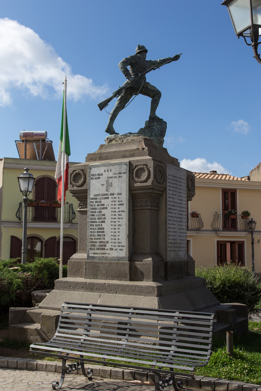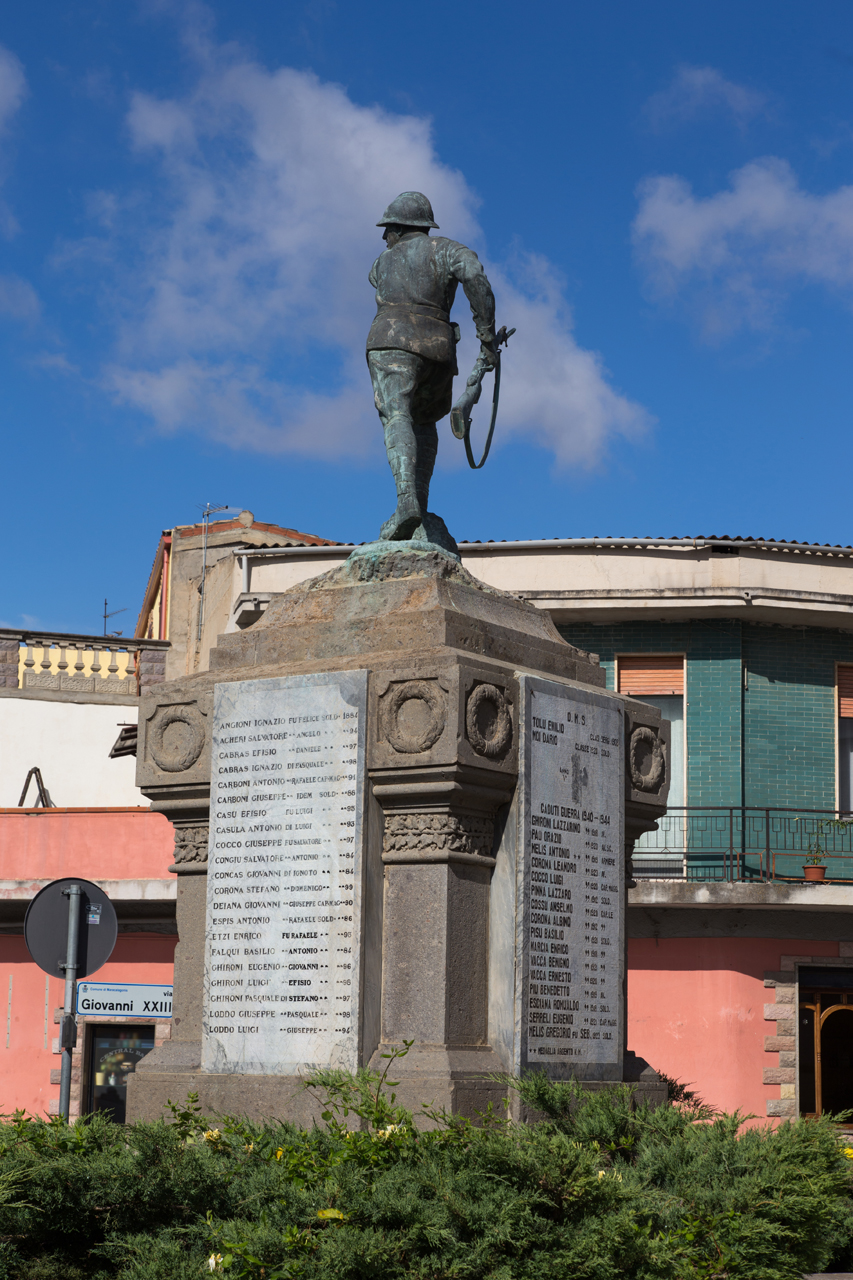 - ISCRIZIONI prospetto/ plinto/ lapide - 1915 --- 1918// In memoria/ dei caduti di Maracalagonis/ I concittadini/ nel XII annuale di guerra// Nell’ora cruenta non rividero/ gli impietriti volti dei padri/ le materne lacrime/ il deluso riso delle amate/ ma l’onor loro e di lor gente/ li sospinse al comando della Patria/ oltre i termini della vita/ onde vanno oltre i termini/ del tempo e della picciola terra/ la virtù l’esempio la gloria// Anno V (fascio littorio)// - capitale - a incisione -