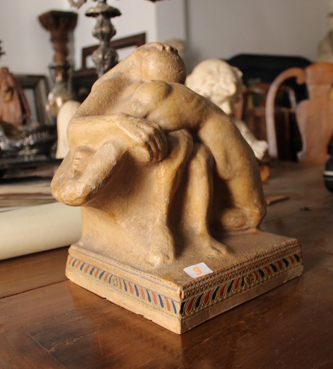 - NOTIZIE STORICO CRITICHE la scultura appartiene a una collezione privata che conserva opere giovanili di Francesco Ciusa realizzate prevalentemente tra gli ultimi anni dell’Ottocento e la seconda metà degli anni Venti del Novecento. Lungo questo periodo, il linguaggio artistico dello scultore si rinnova passando da suggestioni naturalistiche e descrittive ancora influenzate dal verismo ottocentesco verso una apertura alle nuove tendenze di matrice novecentesca, orientandosi su una più decisa semplificazione plastica. Di ispirazione decadentistica, l’opera si ricollega alla corrente simbolista di inizio XX secolo. Esiste un’altra versione realizzata in stucco di marmo, un materiale di sua creazione ispirato allo stucco romano per uso edilizio. Quest'ultima versione dell'opera è stata esposta alla mostra personale alla Galleria Miramare di Cagliari, nel 1932