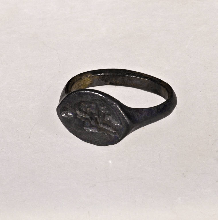Piastra ovale intagliata; spessa verga a nastro.