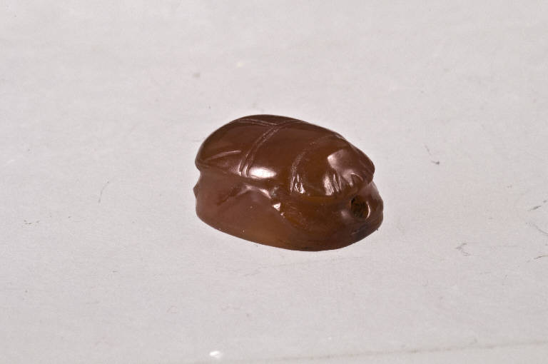 pietra intagliata a forma di scarabeo; sul retro superficie intagliata.