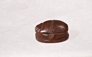 pietra intagliata a forma di scarabeo; sul retro superficie intagliata.