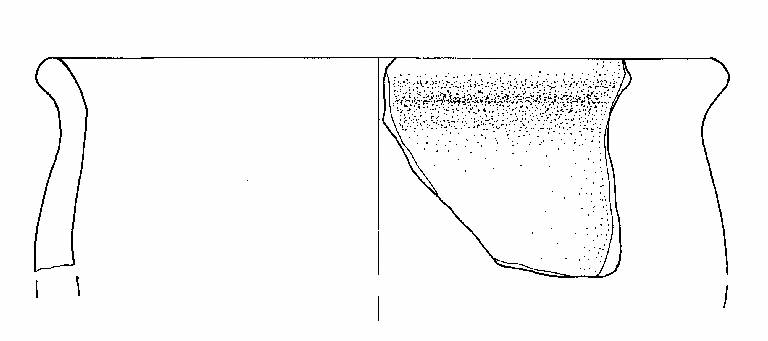 Orlo+ parete di olla\nSi conserva un frammento di orlo svasato con bordo appiattito e parete.\nCorpo ceramico semi grossolano, a superficie esterna con tracce di lisciatura, interna grezza.\nColore nucleo: grigio, esterno e interno: bruno.