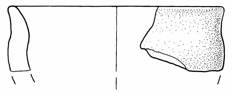 Orlo+ parete di scodella\nSi conserva un frammento di orlo svasato con bordo arrotondato e parete.\nCorpo ceramico semi grossolano, a superficie esterna e interna grezza.\nColore nucleo, esterno e interno: bruno chiaro.