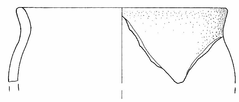 Orlo+ parete di olla\nSi conserva un frammento di orlo svasato con bordo arrotondato e parete.\nCorpo ceramico semi grossolano, a superficie esterna e interna lisciata.\nColore nucleo: grigio, esterno e interno: bruno.