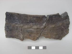 Orlo+ parete di olla\nSi conserva un frammento di orlo ingrossato con bordo appiattito e parete. Reca un cordone a pseudotreccia.\nCorpo ceramico grossolano, a superficie esterna e interna grezza.\nColore nucleo, esterno, interno: bruno.