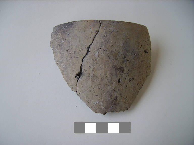 Orlo+ parete di scodellone\nSi conservano due frammenti di orlo indistinto con bordo appiattito e parete.\nCorpo ceramico semi grossolano, a superficie esterna e interna grezza.\nColore nucleo: grigio, esterno, interno: bruno.