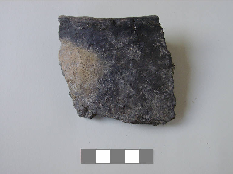 Orlo+ parete di olla\nSi conserva un frammento di orlo ingrossato con bordo arrotondato e parete.\nCorpo ceramico grossolano, a superficie esterna e interna grezza.\nColore nucleo, esterno, interno: bruno.