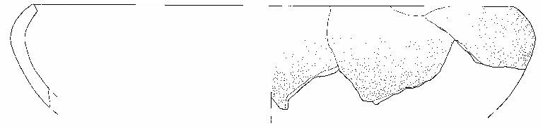 Orlo+ parete di olla\nSi conservano quattro frammenti di orlo rientrante con bordo appiattito e parete.\nCorpo ceramico grossolano, a superficie esterna e interna lisciata sommariamente.\nColore nucleo, esterno, interno: bruno.