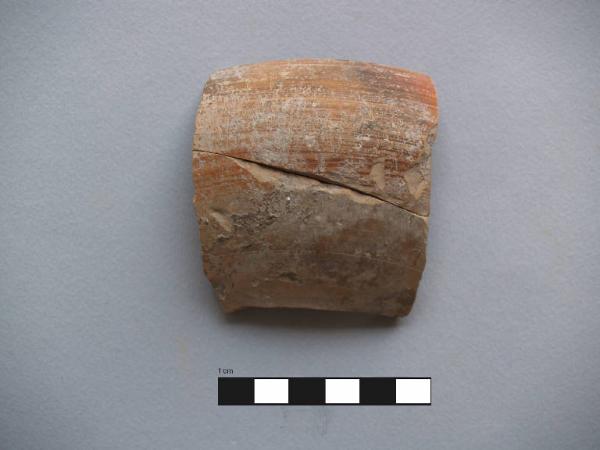 Orlo+parete di ciotola. \nOrlo arrotondato, labbro rientrante a profilo curvilineo, vasca a calotta mediamente profonda.\nCorpo ceramico molto compatto, con superficie liscia e compatta, con depurazione buona, assenza di inclusi. Colore nucleo: rosato; sup. esterna: rosato, una banda dipinta di colore rosso-bruno nella parte superiore; sup. interna: dipinta di rosso-bruno.\n2 frammenti combacianti.\nProbabilmente pertinente a 325/3 - St 161038.