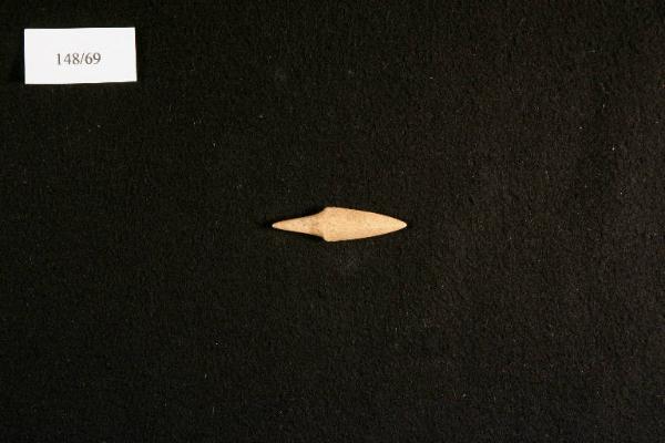 Punta di freccia con due alette e peduncolo a sezione circolare.
