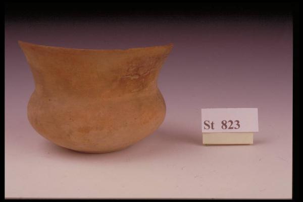 Bicchiere a corpo ellittico e alto collo a imbuto, con superficie di colore beige