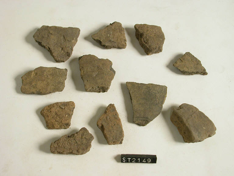 Frammenti ceramici pertinenti a un recipiente di forma non riconoscibile. Colore nocciola grigiastro.