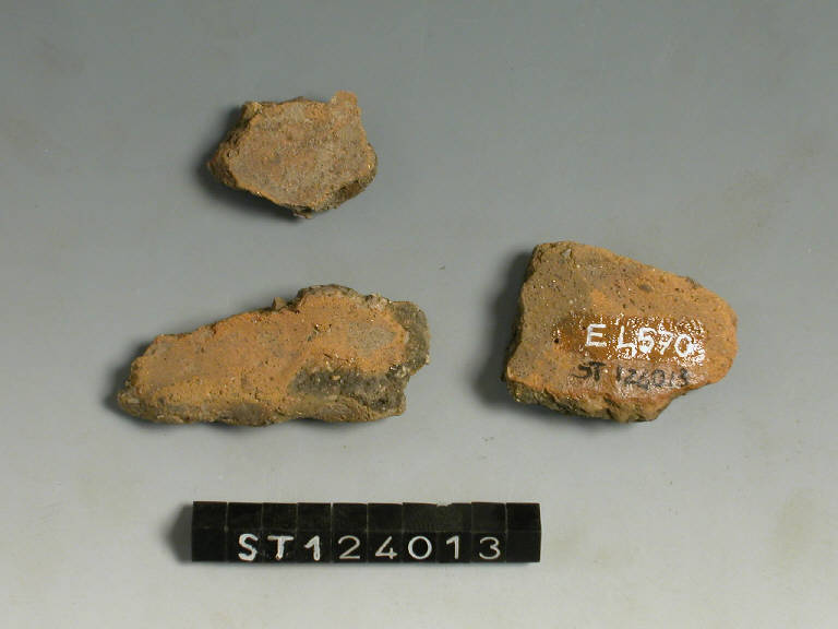 Frammenti pertinenti ad un recipiente ceramico di forma non riconoscibile con orlo decorato a tacche (vedi annotazioni).