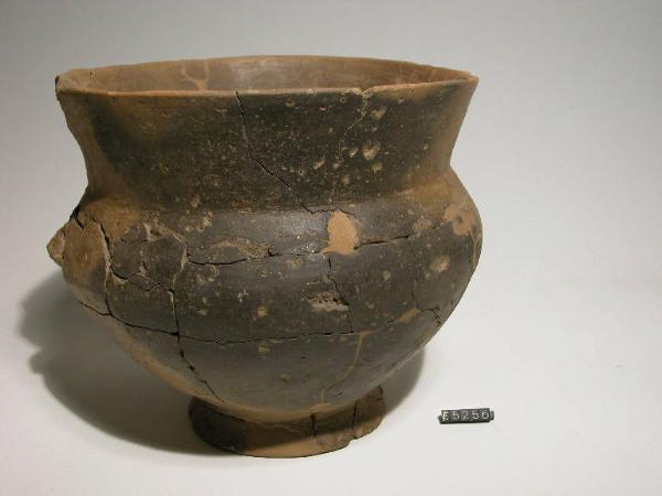 Alto labbro svasato, corpo ovoidale, basso piede obliquo; ansa a nastro verticale impostata sull'orlo e sul diametro massimo