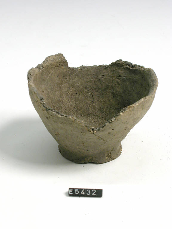 Orlo assottigliato, corpo troncoconico, basso piede a profilo obliquo.