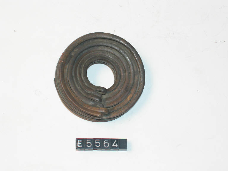 Gomitolo di bronzo formato da triplice avvolgimento a spirale di sei doppie verghette a sezione appiattita
