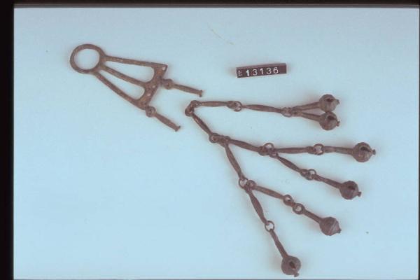 Elemento di pendaglio con relative catenelle desinenti a testa di papavero