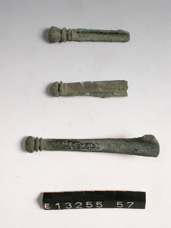 Frammento di staffa di fibula desinente con appendice pianoconvessa preceduta da una profilatura