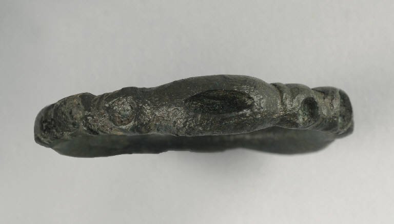 Anello a incavi per decorazioni incrostate, originariamente riempiti di sostanza colorata, forse corallo.